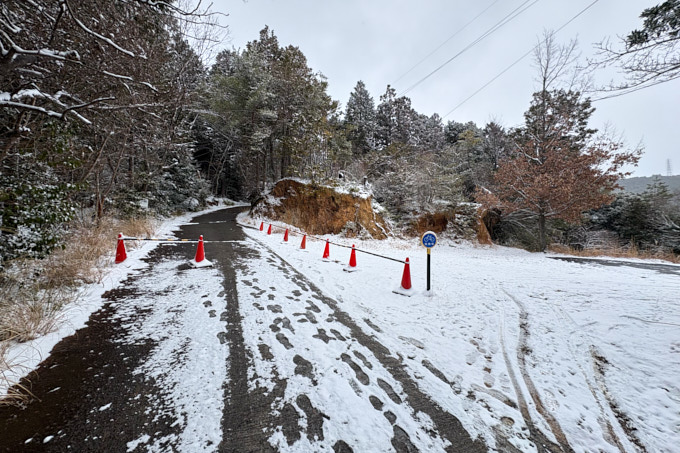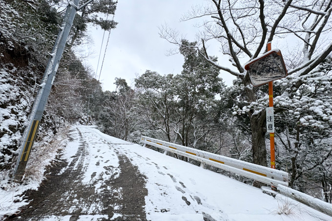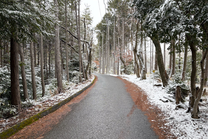本山寺近くの駐車場辺りに来ると、少し道路の雪率が増えてきました。