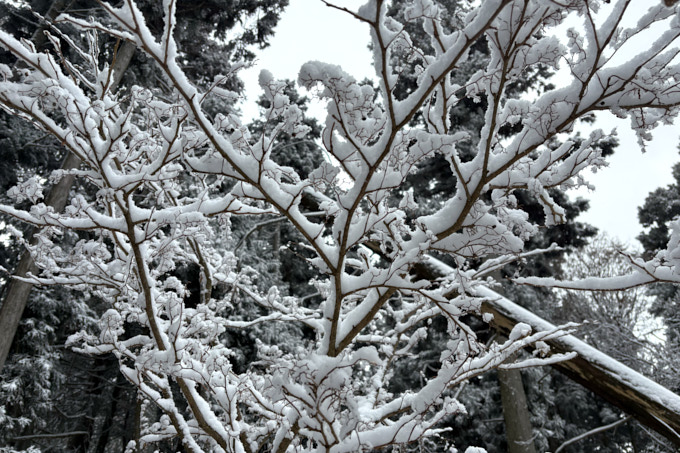 今年は風が強かった影響か、樹氷的な状態になっているところもチラホラ。