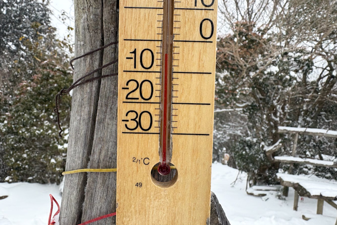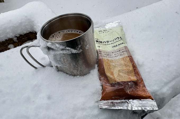 こちらは2025年。ほぼ一緒ですが、左のベンチの足あたりで積雪量を比べてみてください。